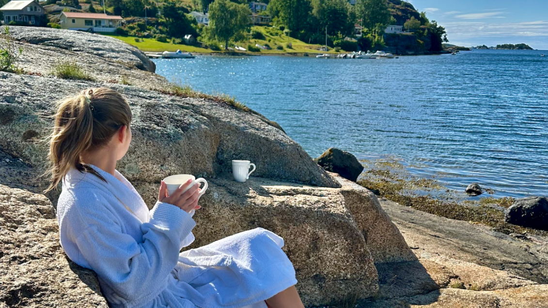 «Jeg sitter med morgenkaffen på terrassen, i pysjen, og administrerer to Airbnb-utleiesteder fra mobilen. Og plutselig triller tårene. Fordi jeg har det så fint. Fordi jeg endelig føler meg nyttig igjen. Fordi jeg får til dette.»